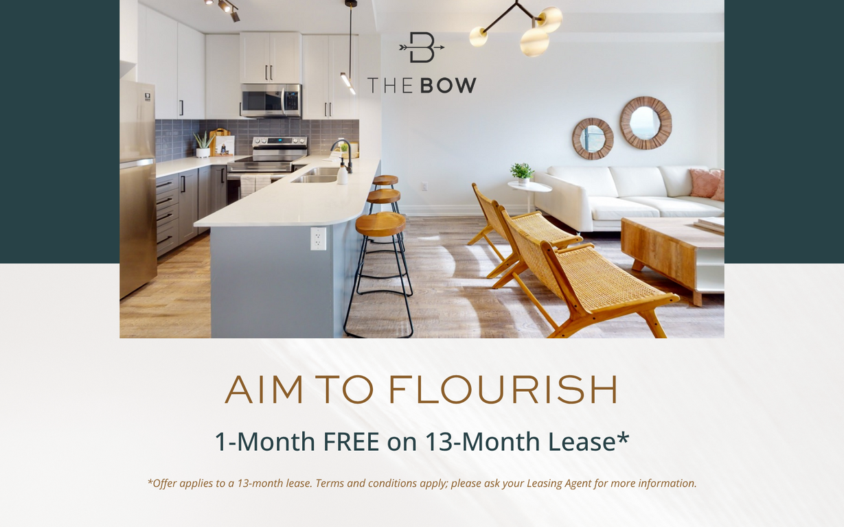 The Bow offers modern apartments for rent in downtown Kitchener, featuring thoughtfully designed 1-and 2-bedroom suites and elevated shared amenities. Located in a walkable neighbourhood near transit, Victoria Park, and everyday essentials, these apartments deliver comfortable, well-managed living in the heart of Kitchener.